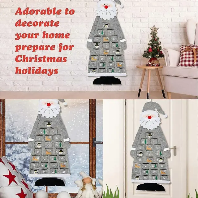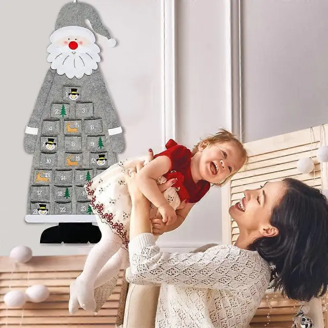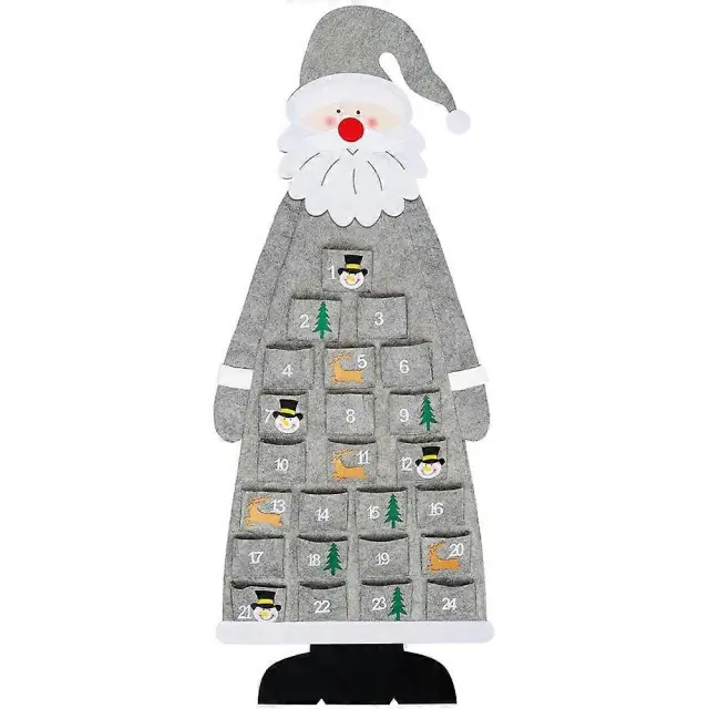 Božični stenski viseči koledar z žepi za večkratno uporabo, siv