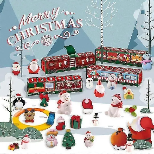 Božični vlak Adventni koledar Mikro pokrajine Odštevanje Božiček Snežak Drevo Mini pokrajinske figuricel