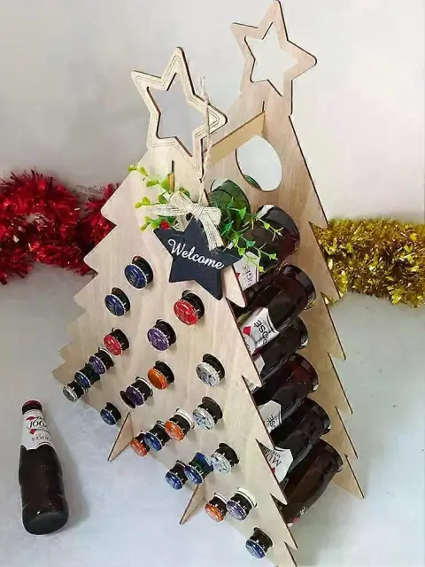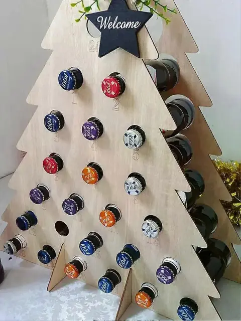 Božično drevo Leseni adventni koledar Ustvarjalni božični okraski Odštevalnik Vino Okras Božično drevo Dekoracija Alkohol