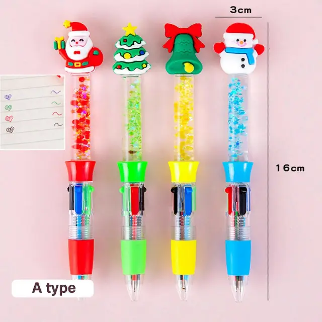 Božično večbarvno pero, 4 kosi, 0,5 mm, 4 barve v 1, gladko za ponovno polnjenje, za pisanje študentskega dnevnika Šolski pisalni pribor