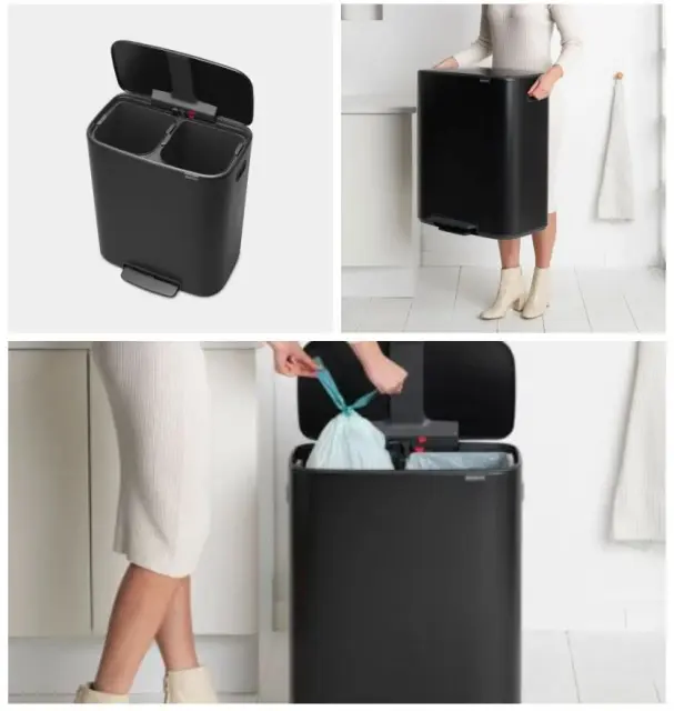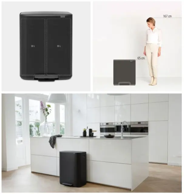 Iščete čudovito rešitev za ločevanje odpadkov? Brabantia Bo Pedal Bin je lepotec znotraj in zunaj, z dvema prostornima 30-litrskima odstranljivima notranjima vedroma za dve vrsti odpadkov. Dobro se prilega ob steno, ima zaščitno nedrsečo podlago, higienično in enostavno odpiranje s pedalom ter mehko zapiranje. Odličen koš za smeti na več načinov!