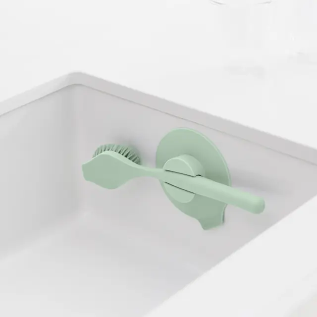 Z robustno krtačo za posodo Brabantia SinkSide s sesalnim držalom enostavno pomivate posodo. Ima varen oprijem, vgrajeno strgalo in držalo s priseskom, da je pripravljena na vašem pomivalnem koritu. Ščetka z ergonomskim držalom enostavno prilepite na notranji del pomivalnega korita.