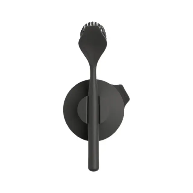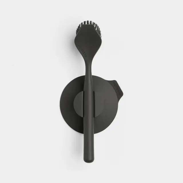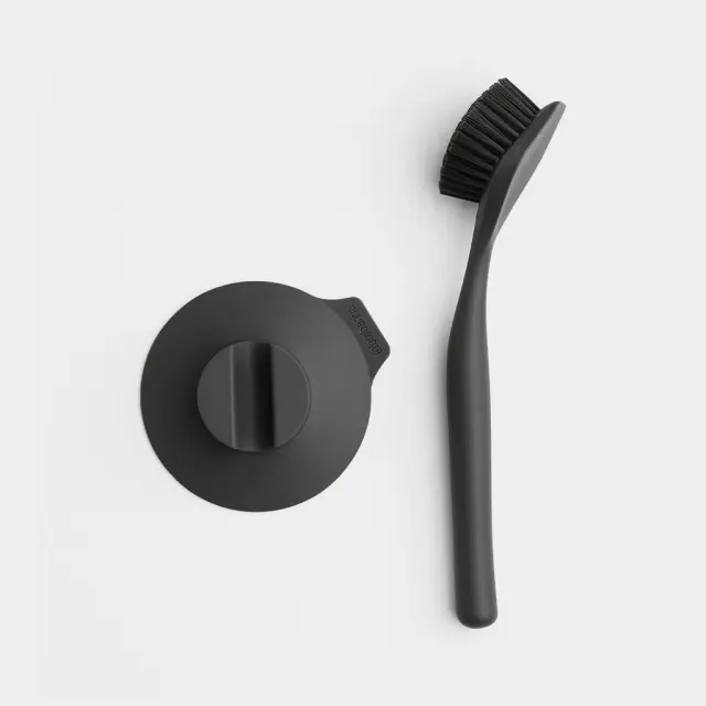 Z robustno krtačo za posodo Brabantia SinkSide s sesalnim držalom enostavno pomivate posodo. Ima varen oprijem, vgrajeno strgalo in držalo s priseskom, da je pripravljena na vašem pomivalnem koritu. Ščetka z ergonomskim držalom enostavno prilepite na notranji del pomivalnega korita.