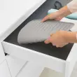 Brabantia silikonska podloga za sušenje posode mint. Primerna za vse vrste posode. Narejena iz mehkega, nedrsečega silikona. Vaša delovna plošča ostane suha, saj voda neposredno teče v umivalnik. Enostavna za čiščenje in pranje v pomivalnem stroju. 5-letna garancija in servis.