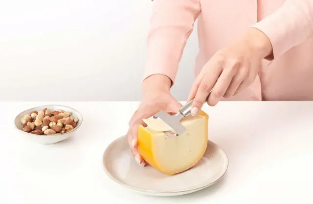 Rezalnik sira je kot nalašč za rezanje mehkega sira. Ta eleganten rezalnik iz nerjavečega jekla Matt Steel ni le lep na videz - na kratko rezilo se ne prilepi niti mehki sir. Narejen je za enostavno rezanje in čiščenje. Super rezalnik!