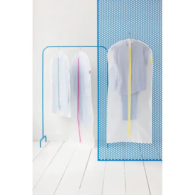 Komplet dveh zaščitnih prevlek za oblačila. imata zadrgo po celi dolžini in sta iz prosojnega materiala, za boljšo preglednost. Idealni sta za potovanja.