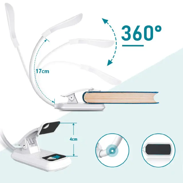 Bralna svetilka, LED svetilka za knjige s 3 načini osvetlitve, za ponovno polnjenje White