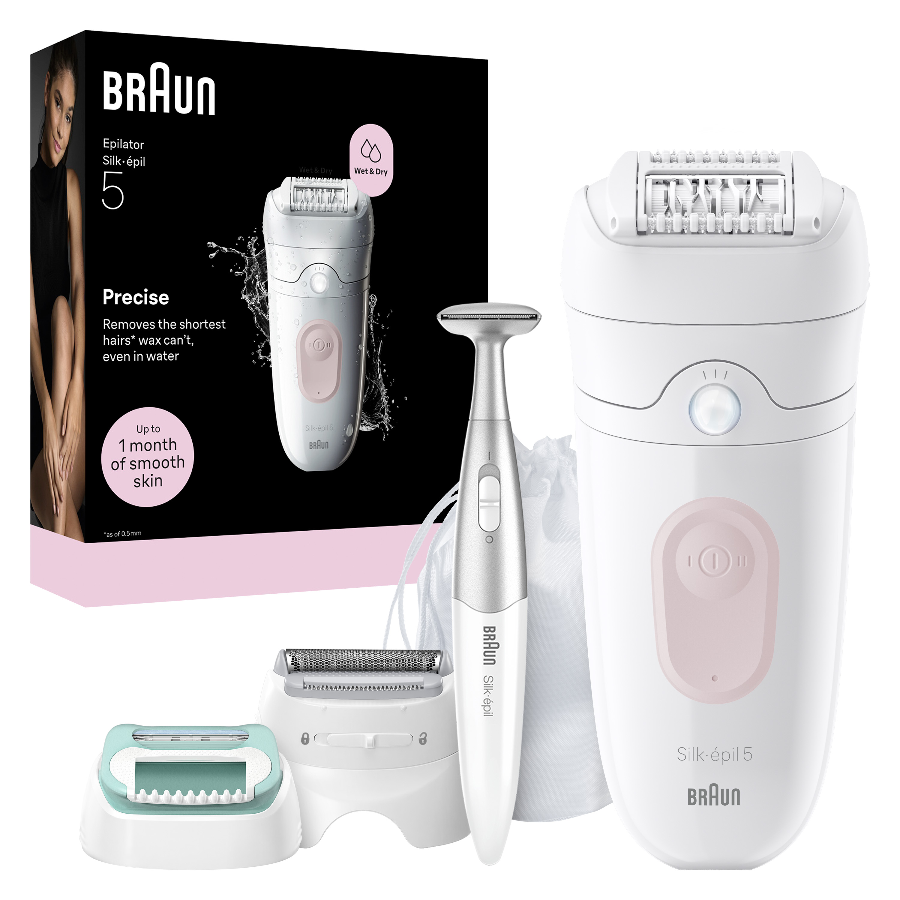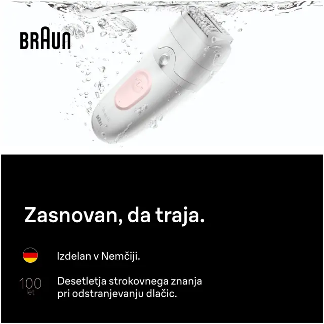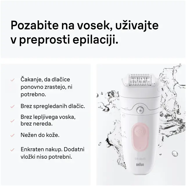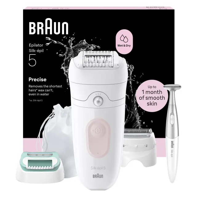 Braun Silk-épil 5 5-251 zagotovi do en mesec gladke kože, kadar koli želite. Ta epilator Braun je opremljen s tehnologijo pincet MicroGrip in lahko ujame tudi dlačice, ki jih vosek ne more (dolge samo 0,5 mm). Manj bolečin po zaslugi nastavka z masažnim valjem. Poslovite se od neprijetnega čakanja, da dlačice ponovno zrastejo, ki je potrebno pri drugih izdelkih za odstranjevanje dlačic, kot je vosek. Ta epilator brez priključne vrvice je zasnovan za udobje in odpravlja potrebo po čiščenju nereda ali obiskih salona. Vključuje prirezovalnik za občutljiva območja, kot je bikini predel. Nasvet: Za zmanjšan občutek bolečine epilacijo izvajajte v kadi ali pod prho s toplo vodo.