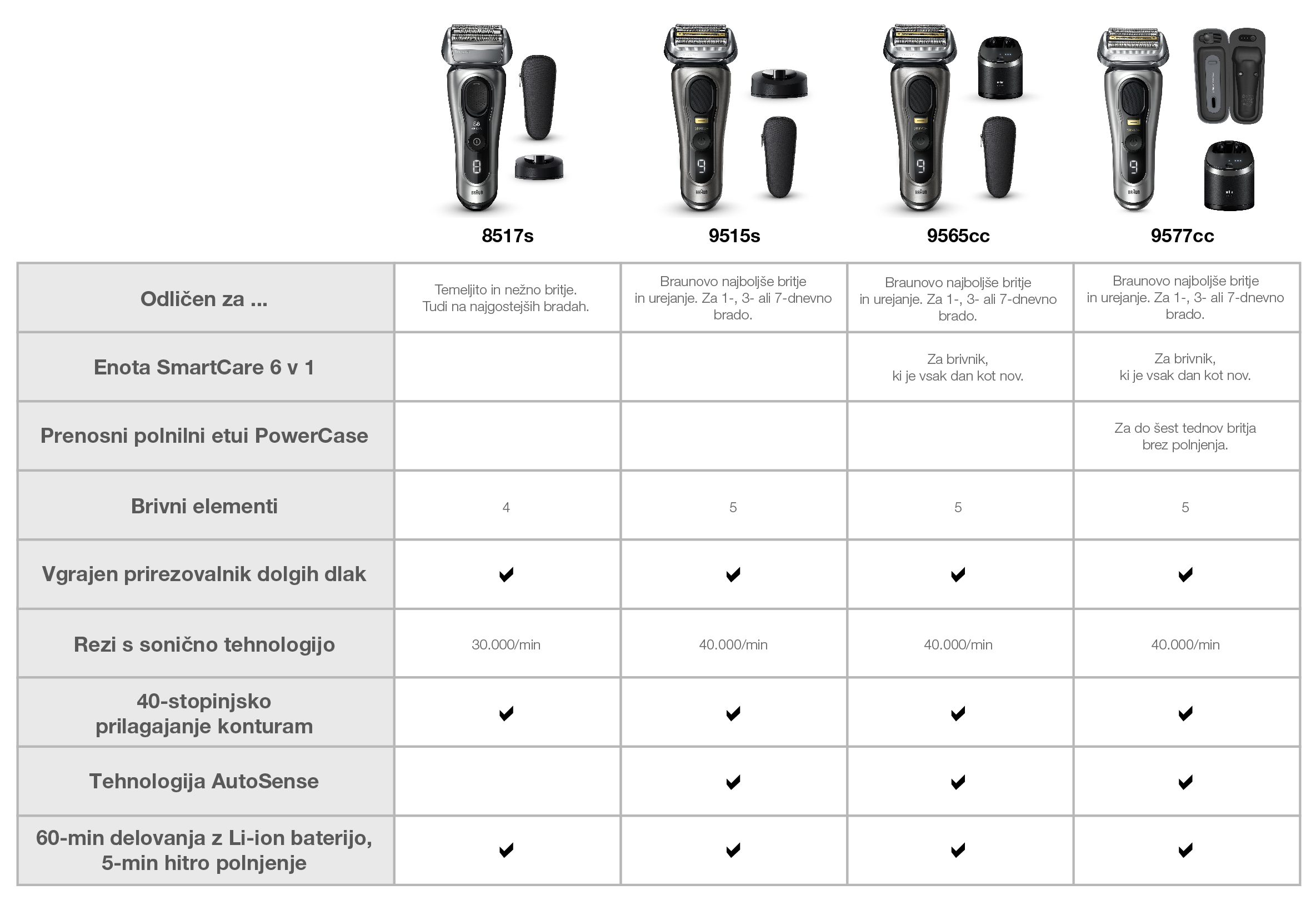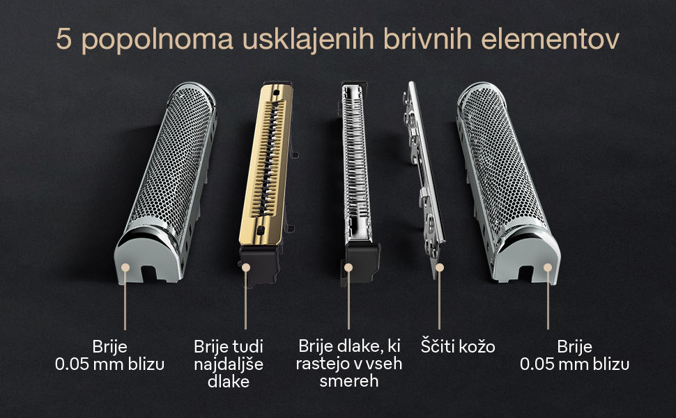 CILJ – BREZ VEČERNE BRADE: pet ultratankih brivnih elementov poskrbi za izjemno temeljito (0,05 mm) in nežno britje, celo pod brado.