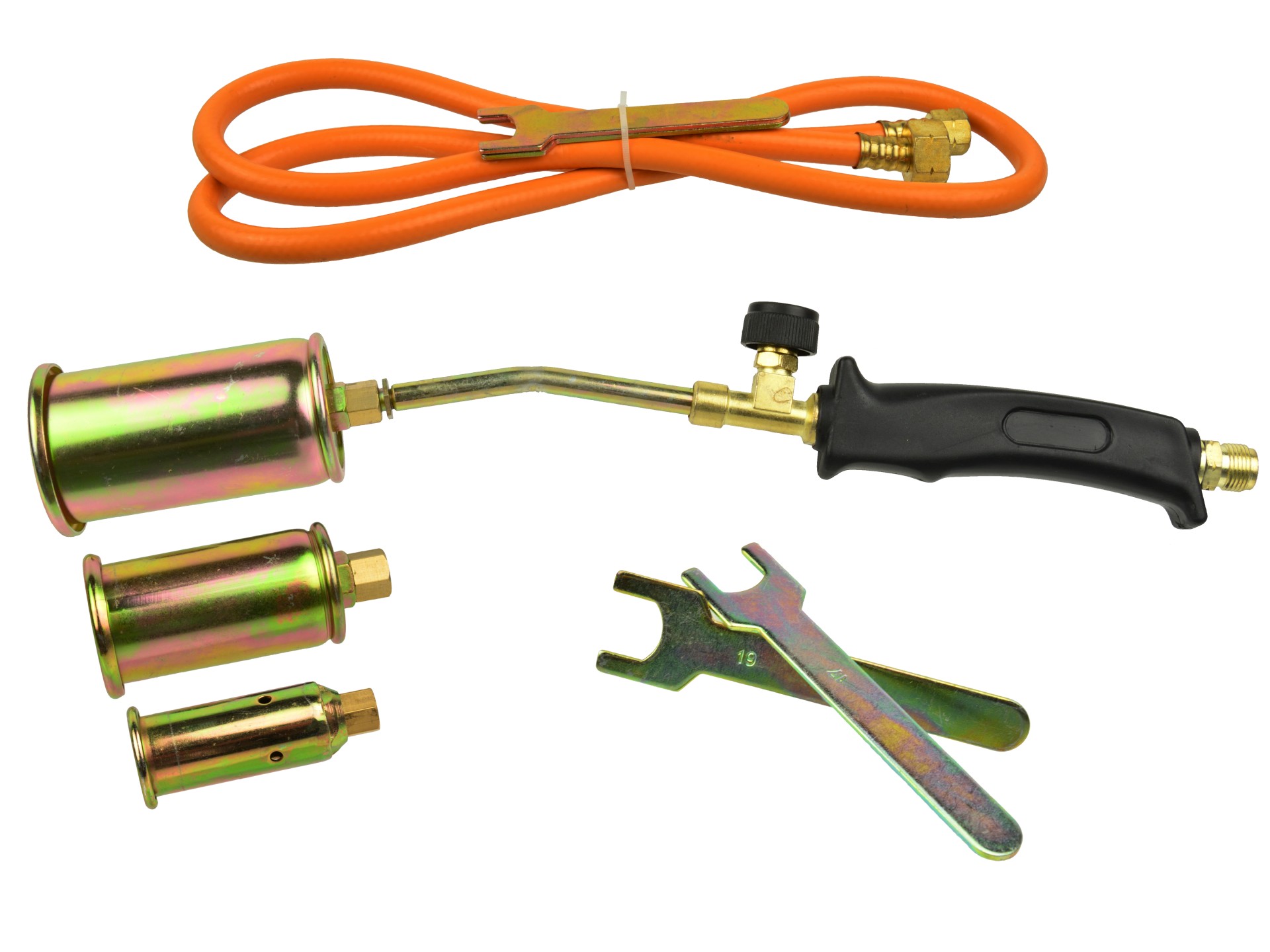 Profesionalni plinski gorilnik za ogrevanje in kurjenje v kompletu s 3 šobami.