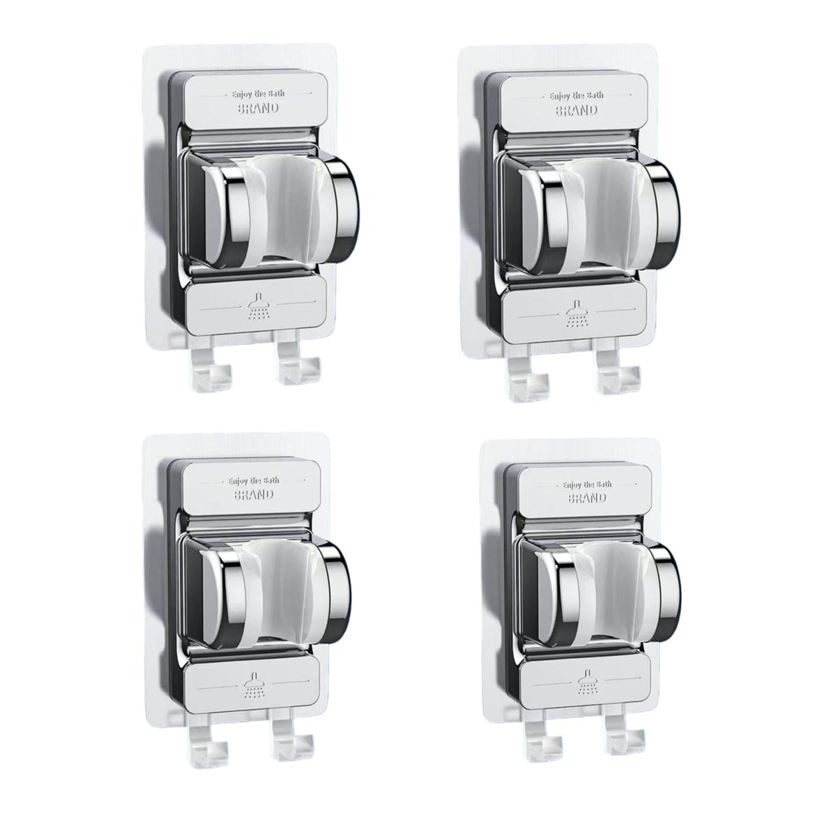 Brez vrtanja 4x nosilec tuša z dvema kljukama, lepilni ABS Silver