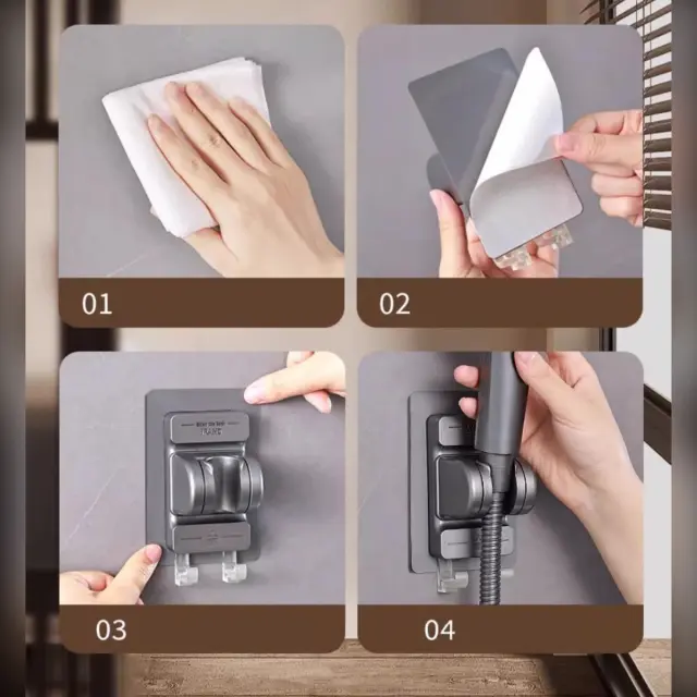 Preprosta namestitev: Namestitev brez orodja omogoča hitro in čisto pritrditev na ploščice, steklo, kovino ali barvane stene. Predstavljajte si, da ste najemnik ali da želite ohraniti stene nedotaknjene: nosilec pritrdite v nekaj sekundah z močno lepilo-kapaciteto, brez vrtanja in brez piljenja. Pritrditveni sistem prenese vsakodnevno uporabo, drži ročno prho in dodatke ter omogoča takojšnjo uporabo brez tehničnega znanja.