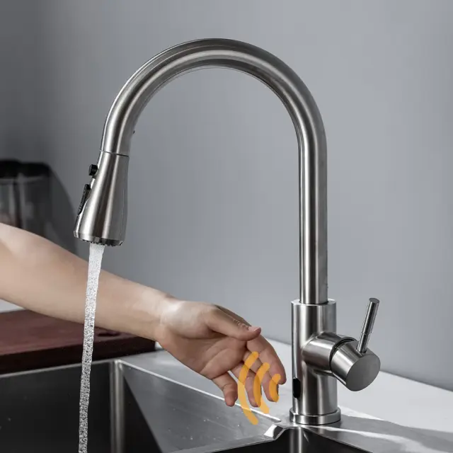 Brezdotikovna kuhinjska pipa, funkcija izvlečenja, trpežna nerjaveča jeklena -hwx-brushed
