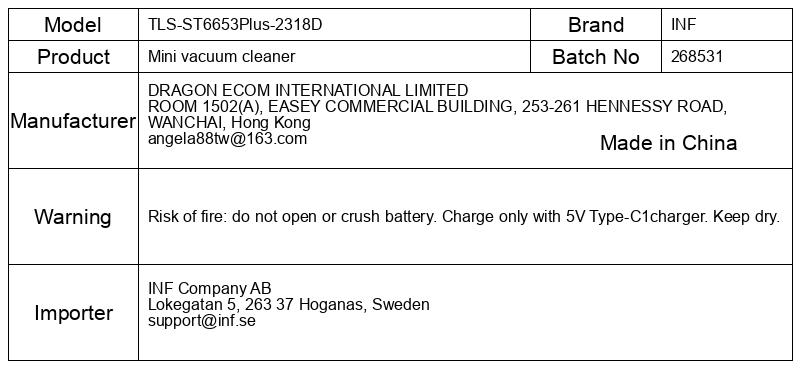 Dolga avtonomija baterije: Prosimo, upoštevajte: to niso originalni deli. Opremljen s 6000mAh baterijo in učinkovitimi brezkrtačnimi motorji, sesalnik zagotavlja dolge intervale delovanja: nizka stopnja 30 minut, srednja 18 minut in visoka 12 minut, s pripravljenostjo približno 30 dni. Polnjenje poteka prek Type-c 5V 1.5A in traja približno 3.5h do polnega, kar omogoča upravljanje energije z indikatorjem stanja baterije med daljšimi potovanji ali pogostimi čiščenji.