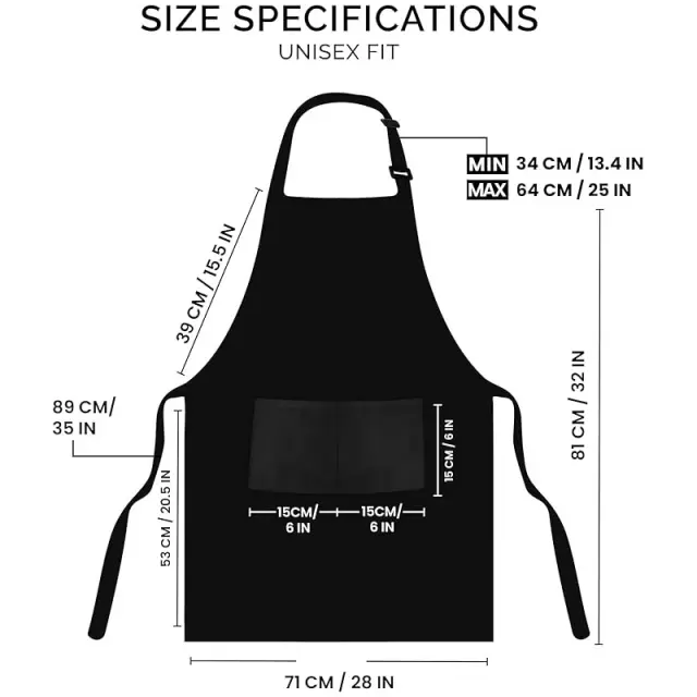 Brezrokavni poliestrski predpasnik - kuhinjski delovni predpasnik z nastavljivim ovratnikom Black