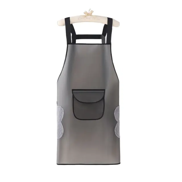 Brezrokavni TPU vodoodporen predpasnik z žepi za brisanje - siv kuhinjski predpasnik