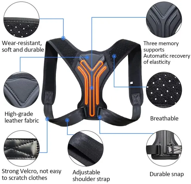 Izboljša držo in počutje: Korektor drže vam lahko pomaga ohranjati ravno držo in zmanjša težave z ukrivljenim hrbtom in vratom ter zmanjša bolečine v vratu, ramenih in hrbtu.
