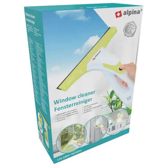ALPINA brezžični akumulatorski čistilec oken, polnilna baterija, rezervoar za vodo 700ml, bel