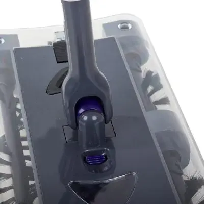 Izdelana iz visokokakovostnih materialov Napajanje: 7,2 V baterija Čas delovanja: na popolnoma napolnjeni bateriji – do 20 minut Lahek in priročen Ima stikalo za vklop/izklop Ima veliko posodo za umazanijo Enostavno praznjenje Lahko se obrne za 360 stopinj Ima magnetno držalo Ohišje ploščate krtače Tehnologija RCR – zamenljive, pralne in ponovno uporabne ščetke Enostavno čiščenje kotov prostorov Dolžina ročaja: 110 cm Dimenzije čopiča: 29,5 cm x 14,5 cm x 4 cm