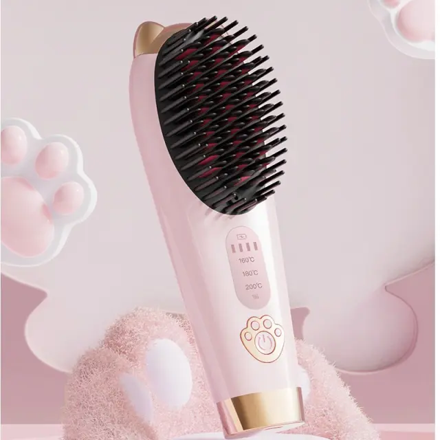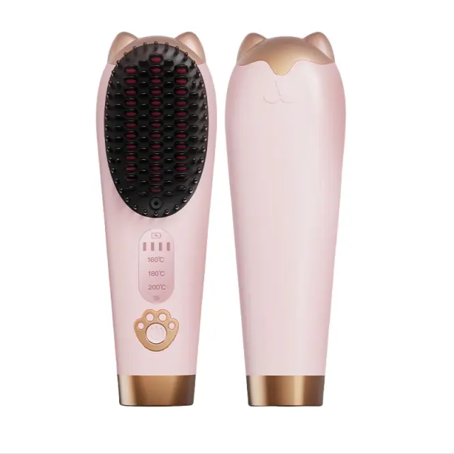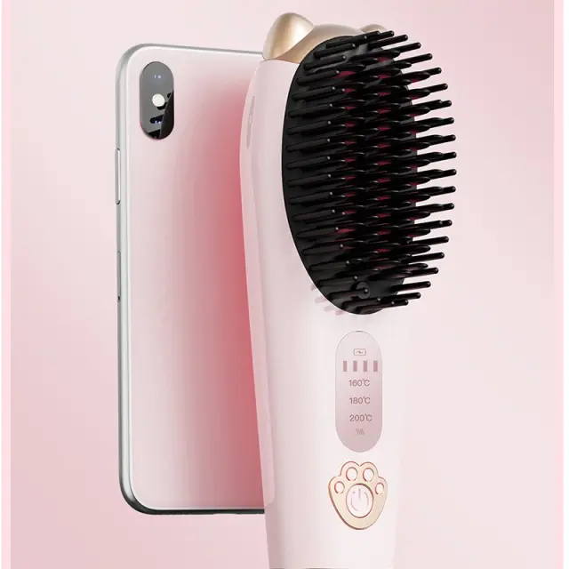 Brezžična električna krtača za ravnanje las: dosezite kakovost las kot iz salona Pink
