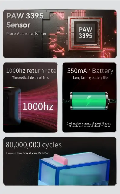 Brezžična igralna miška, ergonomska zasnova za desničarje, polnilna moč, lahka konstrukcija