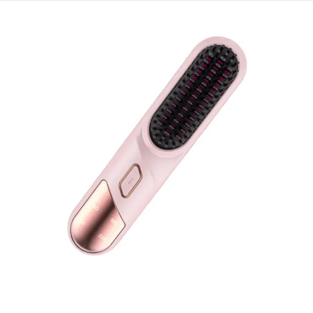 Brezžična krtača za ravnanje las z ionsko nego, prenosni mini oblikovalnik las Pink