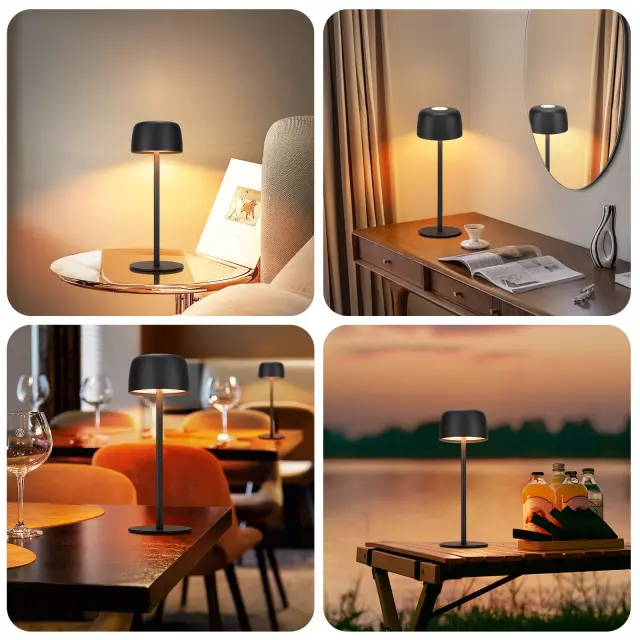 Brezžična namizna svetilka z nastavljivo višino (paket 2 kosov): Ta LED namizna svetilka ima preprosto, moderno zasnovo in dve odstranljivi stebli, ki ju je mogoče nastaviti na želeno višino. Podnožje svetilke ima nedrsečo blazinico, ki preprečuje nenameren zdrs ali padec. 3 barvne temperature in brezstopenjsko zatemnitev: Ta brezžična namizna svetilka ponuja 3 barvne temperature. Vklopite, izklopite in spremenite barvno temperaturo s preprostim dotikom na vrhu, od toplo bele do nevtralno bele in hladno bele (3000K-4000K-6500K). Vsaka barvna temperatura je brezstopenjsko nastavljiva od 10 % do 100 %, kar vam omogoča enostavno ustvarjanje idealnega svetlobnega ambienta za vsako priložnost. Prijetna osvetlitev in funkcija pomnilnika: Ta brezžična namizna svetilka uporablja visokokakovosten LED svetlobni vir, ki enakomerno projicira svetlobo navzdol, brez utripanja ali bleščanja, za optimalno vizualno udobje. Ta LED namizna svetilka ima tudi funkcijo pomnilnika, ki si zapomni zadnje nastavitve barvne temperature in svetlosti. Za priročnejšo uporabo lahko luč tudi hitro izklopite s kratkim pritiskom na stikalo na dotik. Priročno polnjenje prek USB-C: Ta brezžična LED namizna svetilka ima vgrajeno polnilno baterijo z zmogljivostjo 2000 mAh, ki po 3 urah polnjenja zagotavlja 6–15 ur delovanja, odvisno od nastavitve svetlosti. Osvobodite se omejitev tradicionalnih žičnih namiznih svetilk. Visokokakovosten material in vodoodpornost: Ta prenosna baterijska namizna svetilka je izdelana iz visokokakovostnega senčnika iz ABS materiala, trdnega kovinskega podnožja in kovinskega stebra za svetilko. Je trpežna in estetska, idealna za ambientalno osvetlitev v restavracijah, kavarnah, kuhinjah, nočnih omaricah in jedilnicah. Prav tako je vodoodporna po standardu IP44 in opremljena s silikonskim tesnilom za zaščito polnilne vtičnice USB-C pod senčnikom.