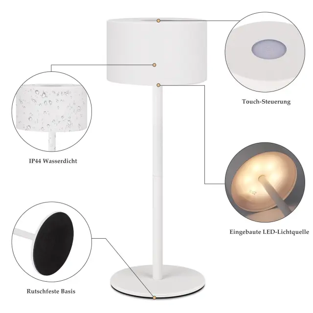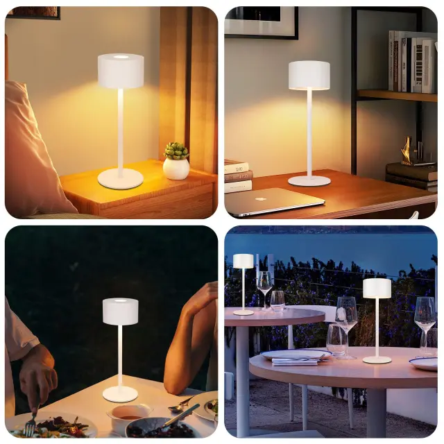 Brezžična namizna svetilka z nastavljivo višino: Ta LED namizna svetilka s preprostim in modernim dizajnom je opremljena z dvema odstranljivima palicama, ki ju je mogoče nastaviti na želeno višino. Podstavek svetilke ima nedrsečo blazinico, ki preprečuje nenameren zdrs ali padec. 3 barvne temperature in neprekinjeno zatemnitev: Ta brezžična namizna svetilka ponuja 3 barvne temperature. Vklopite, izklopite in spremenite barvno temperaturo s preprostim dotikom na vrhu, od toplo bele do nevtralno bele in hladno bele (3000K-4000K-6500K). Vsaka barvna temperatura je neprekinjeno nastavljiva od 10 % do 100 %, kar vam omogoča enostavno ustvarjanje idealnega svetlobnega ambienta za vsako priložnost. Prijetna osvetlitev in funkcija pomnilnika: Ta brezžična namizna svetilka uporablja visokokakovosten LED svetlobni vir, ki enakomerno projicira svetlobo navzdol, brez utripanja ali bleščanja, za optimalno vizualno udobje. Ta LED namizna svetilka ima tudi funkcijo pomnilnika, ki si zapomni zadnje nastavitve barvne temperature in svetlosti. Za priročnejšo uporabo lahko luč tudi hitro izklopite s kratkim pritiskom na stikalo na dotik. Priročno polnjenje prek USB-C: Ta brezžična LED namizna svetilka ima vgrajeno polnilno baterijo z zmogljivostjo 2000 mAh, ki po 3 urah polnjenja zagotavlja 6–15 ur delovanja, odvisno od nastavitve svetlosti. Osvobodite se omejitev tradicionalnih žičnih namiznih svetilk. Visokokakovosten material in vodoodpornost: Ta prenosna baterijska namizna svetilka je izdelana iz visokokakovostnega senčnika iz ABS materiala, trdnega kovinskega podnožja in kovinskega stebra za svetilko. Je trpežna in estetska, idealna za ambientalno osvetlitev v restavracijah, kavarnah, kuhinjah, nočnih omaricah in jedilnicah. Prav tako je vodoodporna po standardu IP44 in opremljena s silikonskim tesnilom za zaščito polnilne vtičnice USB-C pod senčnikom.