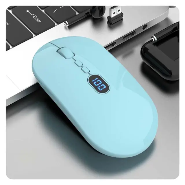Brezžična miška USB Bluetooth z digitalnim zaslonom - 2.4G + Bluetooth Blue