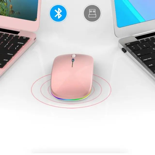 Brezžična miška z dvojno povezavo 2,4 G + Bluetooth 5,8 G - roza