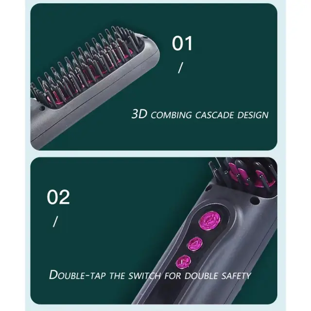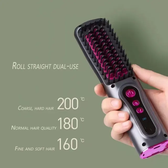 Prenosna rešitev za oblikovanje: Prosimo, upoštevajte: to niso originalni deli. Uživajte v kakovostnem oblikovanju kot iz salona na poti z našo brezžično krtačo za ravnanje las. Njena kompaktna oblika in polnilna baterija sta popolni za potovanja, kar vam omogoča, da brez truda poravnate ali skodrate lase kadarkoli in kjerkoli. Priročnost brezžičnega delovanja zagotavlja svobodo gibanja, kar zagotavlja enostavno izkušnjo oblikovanja. Ne glede na to, ali popravljate svoj videz v telovadnici, se pripravljate na poslovni sestanek ali se odpravljate na nočni izhod, je to prenosno orodje za oblikovanje vaš popoln spremljevalec. Funkcija polnjenja zagotavlja, da jo imate vedno pripravljeno za uporabo, brez potrebe po stalni menjavi baterij. Zaradi tega je okolju prijazna in stroškovno učinkovita rešitev za vaše potrebe po oblikovanju.