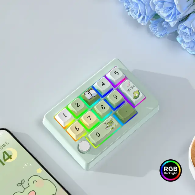 Brezžična RGB igralna mehanska mini tipkovnica XSX-W908 z 12 tipkami Green