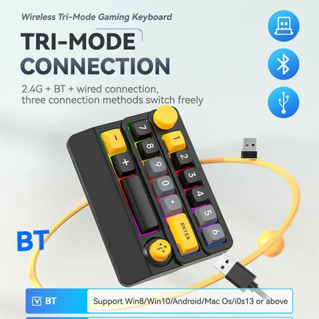 Brezžična RGB mehanska igralna tipkovnica XSX-W909 z makro definicijo Black+Yellow