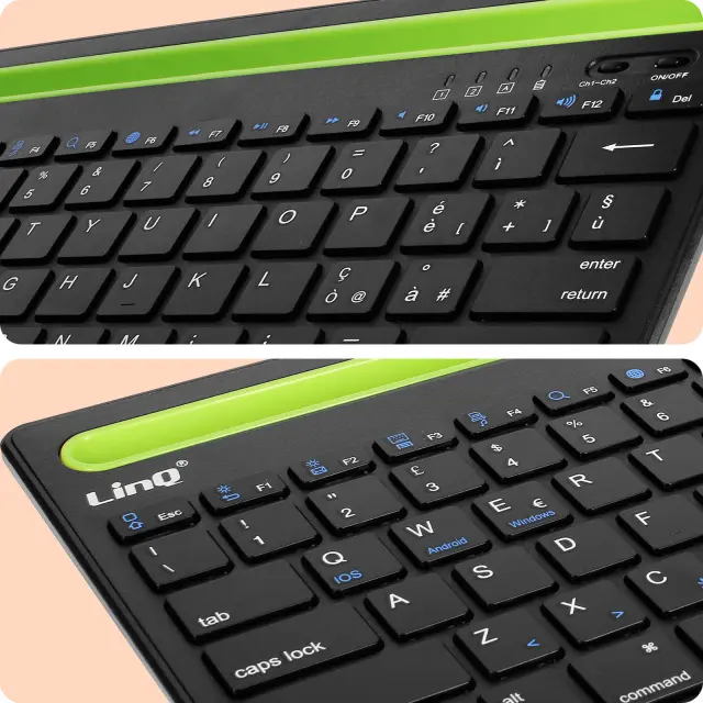 Brezžična tipkovnica QWERTY, združljiva z iOS / Android / Windows, črna - LinQ