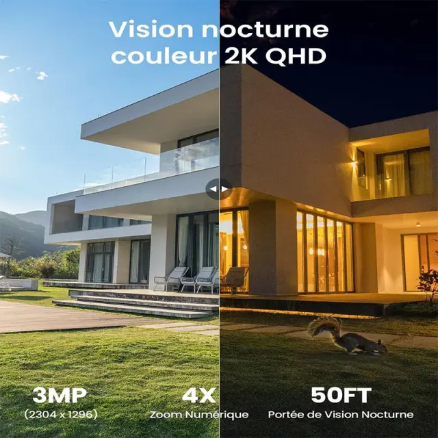 • Izjemna nočna vizija: Opremljena z 18 LED žarnicami in 4 PIR LED diodami, ta kamera zagotavlja izjemno barvno nočno vizijo in napredno zaznavanje gibanja, kar zagotavlja visoko kakovostne slike in natančna obvestila tudi v slabih svetlobnih pogojih.