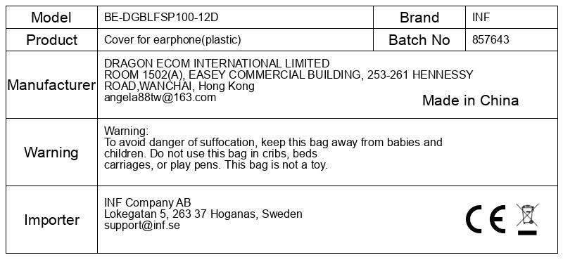 Opozorilo: Da bi se izognili nevarnosti zadušitve, vrečko hranite izven dosega dojenčkov in otrok. Vrečke ne uporabljajte v otroških posteljicah, vozičkih ali igralih. Ta vreča ni igrača.