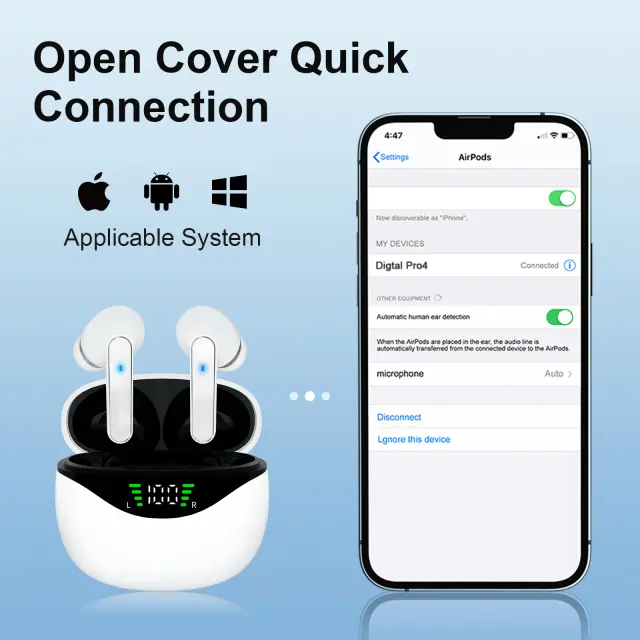 Brezžične 5.4 Bluetooth slušalke DP4 z dolgo življenjsko dobo baterije White