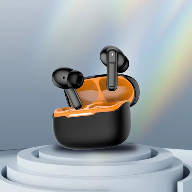 Brezžične slušalke Bluetooth z belo-oranžno barvo in šestimi mikrofoni ANC+ENC Black+Orange
