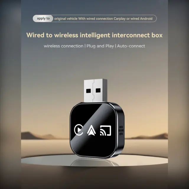 Enostavna povezljivost: Prosimo, upoštevajte: to niso originalni deli. Izkusite enostavno integracijo z obstoječim sistemom vašega avtomobila. Ta adapter 3-v-1 brezhibno pretvori žični CarPlay v brezžični, kar omogoča brezžični CarPlay, Android Auto in funkcijo Mirror Link. Uživajte v urejeni armaturni plošči in večji priročnosti. Ta adapter je združljiv z originalnim avtomobilskim mikrofonom in upravljanjem na dotik ter zagotavlja nemoten prehod na brezžično izkušnjo. Popoln za uporabnike Apple CarPlay in Android Auto, ki želijo nadgraditi svojo avtomobilsko zabavo brez zamenjave celotnega sistema. Pretakajte glasbo, enostavno navigirajte in brezžično dostopajte do svojih najljubših aplikacij. Ta adapter je združljiv z vozili, ki že imajo tovarniško žično povezavo CarPlay.