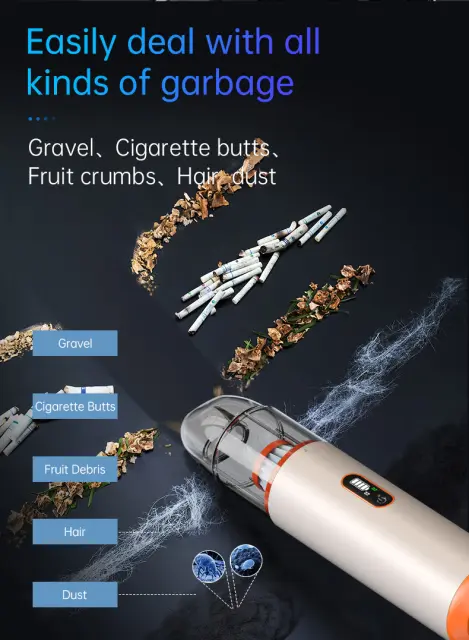 Zmogljivo sesanje: Ročni sesalnik V22S zagotavlja izjemno moč čiščenja s svojim visokozmogljivim motorjem, ki ustvarja do 11 KPA sesalne moči. Brez napora dvigne prah, umazanijo, drobtine in dlake hišnih ljubljenčkov iz notranjosti avtomobila, preprog, oblazinjenja in ozkih prostorov.