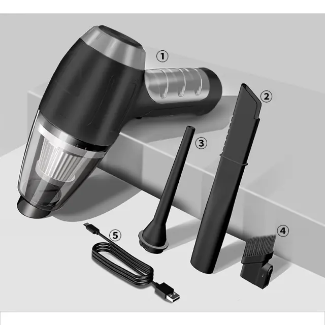 Dolgotrajna baterija: Sesalnik napaja 2000 mAh polnilna baterija, ki zagotavlja do 20 minut neprekinjenega delovanja z enim polnjenjem, kar je dovolj za čiščenje celotnega avtomobila. Priloženi kabel za polnjenje tipa C omogoča priročno polnjenje.