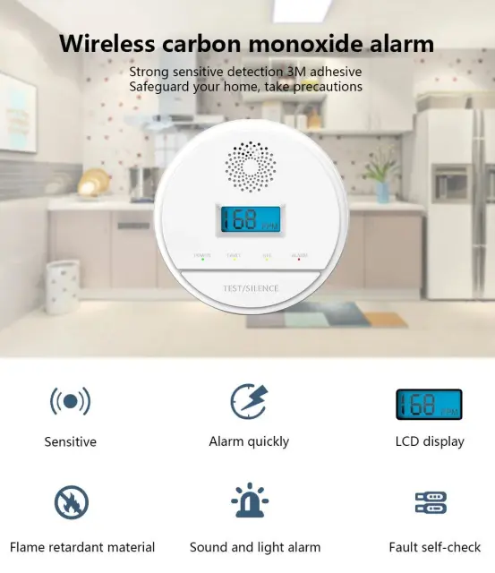 Glasen alarm: detektor ogljikovega monoksida je opremljen z vgrajenim 85 dB glasnim alarmom, ki vas opozori v primeru nevarnih ravni ogljikovega monoksida, tako da lahko hitro ukrepate.