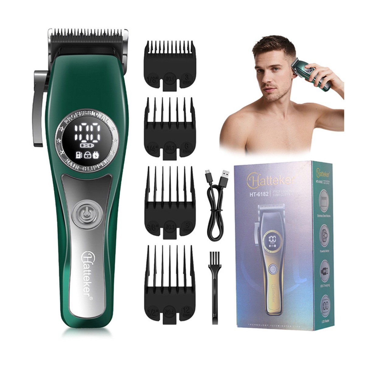 Brezžični električni strižnik las - USB polnjenje, nastavljiva dolžina Green