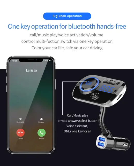 Pogovarjajte se prostoročno: Povežite FM oddajnik z avtomobilom prek povezave Bluetooth in naredite svojo vožnjo še varnejšo. Držite gumb za dve sekundi, da aktivirate glasovnega pomočnika Siri/Google Assistant, ki vam lahko pomaga pri klicanju in sprejemanju klicev, predvajanju glasbe in upravljanju navigacije. Podpira sisteme iPhone in Android.