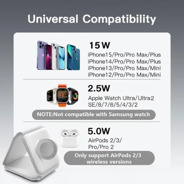 Vhod: 9V2,7A,12V2A Razvrsti 1: 15W/10W/7,5W/5W Velikost izdelka: 70*122,2*111mm Teža izdelka: 153g Velikost izdelka: bela 1. Aimant puissant integral Precis poravnava ,Ustreza seriji iPhone 15/14/13/12. 2.klešče za recevoir ne prend pas de place,le material doux de siliceous gel peut se plier à plusieurs reruns. 3. Napolnite telefon in si ga kadar koli oglejte.