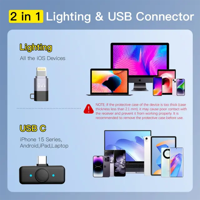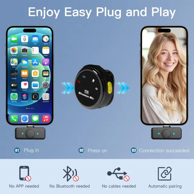 Enostavna povezava – Aplikacija ali Bluetooth nista potrebna. Preprosto priključite RX v svojo napravo in takoj začnite uporabljati mikrofon. Združljiv z iPhoni, pametnimi telefoni Android, iPadi in drugimi.