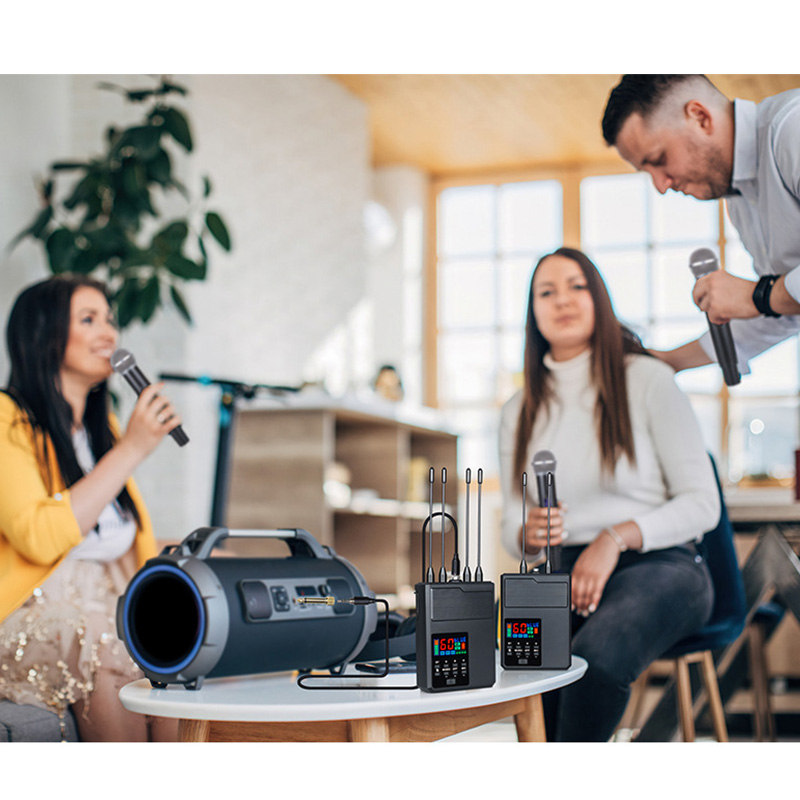 Vsestranske aplikacije: idealne za širok spekter aplikacij, vključno s konferencami, karaokami, nastopi v živo in domačo zabavo. Sistem je enostaven za postavitev in uporabo, zato je primeren tako za profesionalce kot za amaterje.