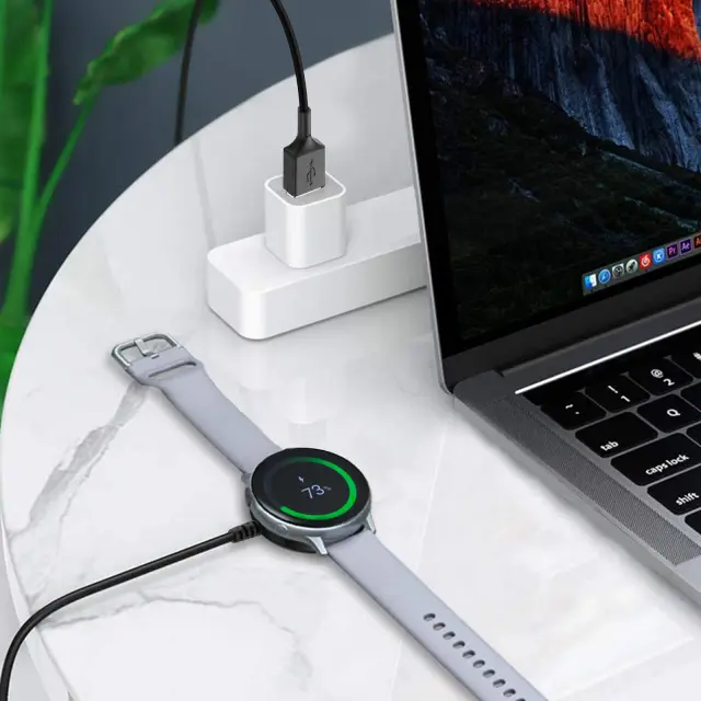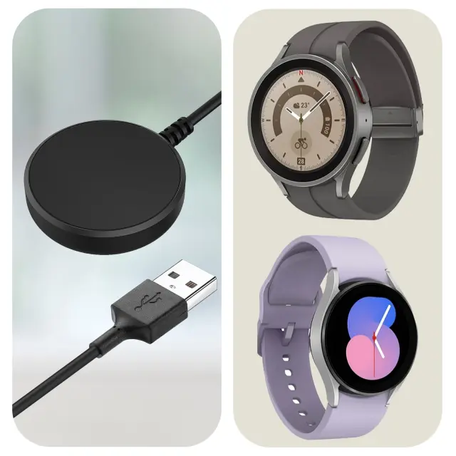 Magnetni polnilec z integriranim kablom USB, posebej zasnovan za Galaxy Watch 5 in 5 Pro. Omogoca brezžicno in hitro polnjenje vaše pametne ure. Vzdržljiv magnetni sistem s kakovostnim dizajnom.