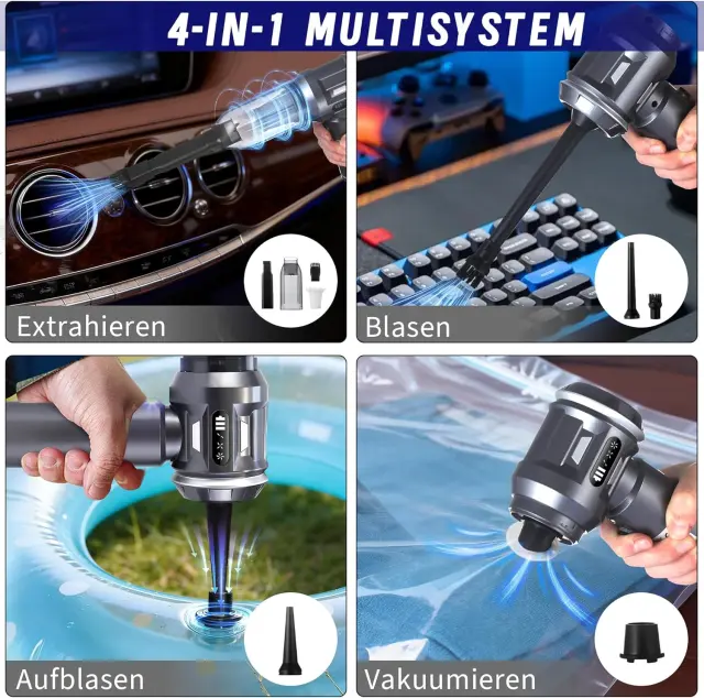 Brezžični ročni sesalnik Nettlife 17000PA - Zmogljiv 4-v-1 mini avtomobilski sesalnik - 3-stopenjski brezkrtačni motor - Dom in hišni ljubljenčk