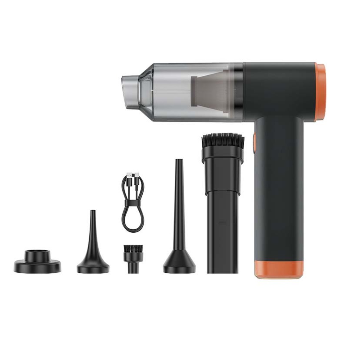 Vsestranski nastavki za čiščenje: Prosimo, upoštevajte: to niso originalni deli. Ta ročni sesalnik je opremljen z obsežnim naborom nastavkov za spopadanje s katero koli nalogo čiščenja. Ploščata šoba je kot nalašč za čiščenje ozkih prostorov in rež, medtem ko je šoba s krtačo idealna za odstranjevanje dlak hišnih ljubljenčkov in prahu z oblazinjenja in preprog. Podaljšek vam omogoča, da dosežete pod sedeže in v druge težko dostopne prostore. S temi vsestranskimi nastavki lahko preprosto prilagodite svojo izkušnjo čiščenja svojim specifičnim potrebam in zagotovite temeljito in učinkovito čiščenje vsakič. Priložene pihalne šobe se lahko uporabljajo za pihanje prahu s težko dostopnih mest.
